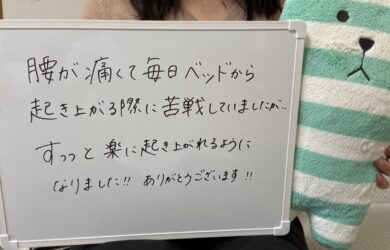 2025.11.05 初診 腰の骨の一番下が右にズレ、神経に触れて長年の腰痛となっていました。